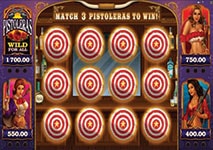 To play Pistoleras slot, select a coin size between $0.01 and $1.00, then choose up to 10 coins per line, giving a total bet range of $0.25–$250. Hit Spin or use Autoplay for consecutive rounds. Wins form left to right across the 25 fixed paylines. Three or more scatters anywhere trigger up to 25 free spins with tripled prizes, while stacked wilds boost base-game wins. Landing bonus symbols on reels 1, 3 and 5 activates the Shootout Bonus, where you pick targets for instant payouts.